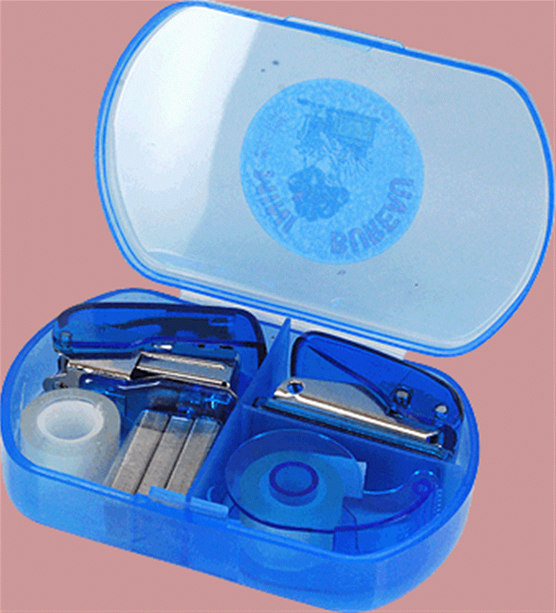 Voici un nécessaire de bureau bien rangé et compact à mettre dans son sac ou dans sa poche. Agrafez, perforez, scotchez ! Vous serez d'une efficacité redoutable !