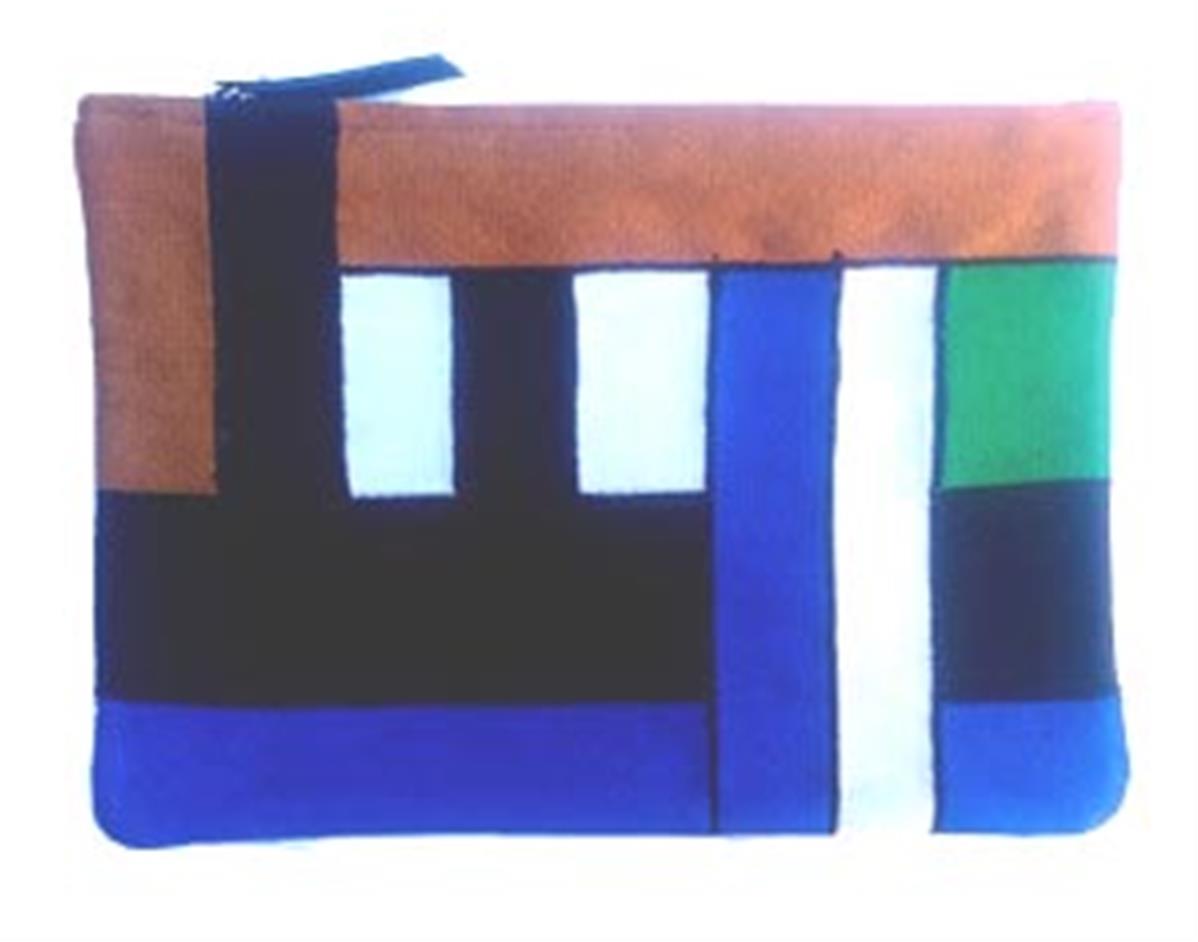 Pochette en coton comprenant un compartiment central avec une fermeture zippée.
