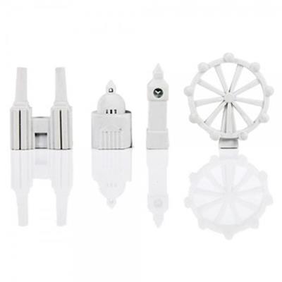 ENSEMBLE DE 4 GOMMES LONDON CITY - SUCK UK Set de 4 gommes LONDRES, de couleur grise. Quatre monuments représentés. Dimensions approximatives de chaque gomme : 2cm x 1cm x 3cm